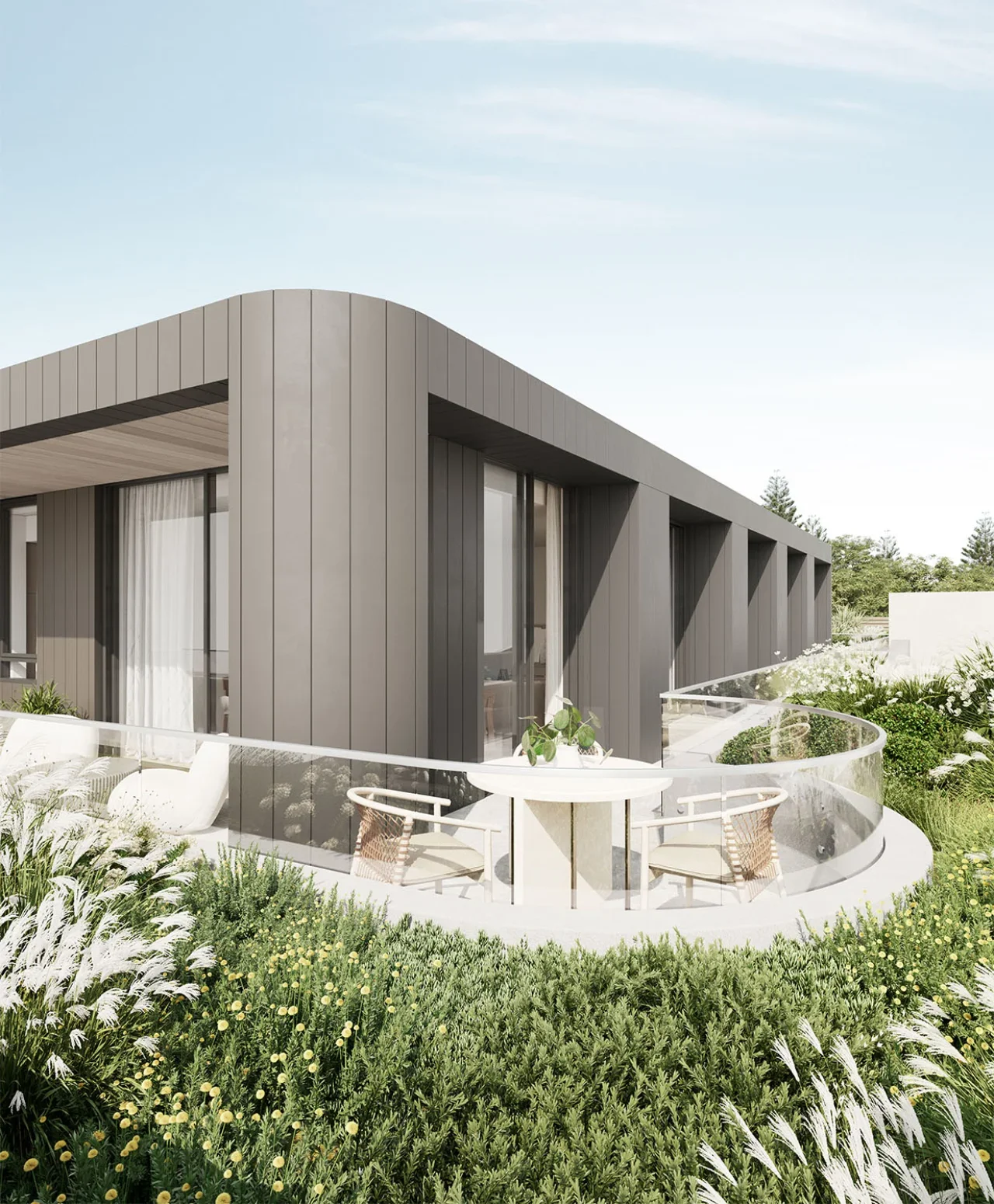Plantings fuse flowing architectural forms in a botanical show. Indoor-outdoor living kissed by nature and the sun. In the sun-filled courtyard residences, there’s a constant play between inside and out. Living spaces that dissolve the lines between interior and exterior. Cooling gardens that fold nature seamlessly into your home. Perfect for alfresco entertaining and children’s play.