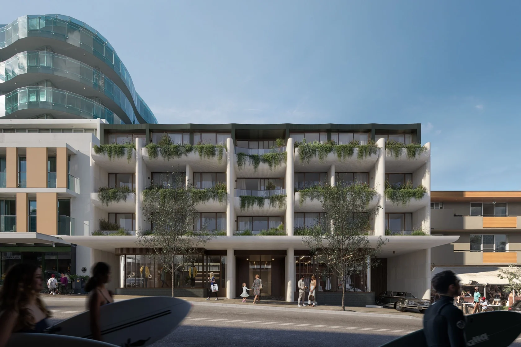 Through the acquisition of the neighbouring property, this project now spans 2911sqm across Hall Street and Roscoe Street. A big step up from the original 2023 approval for a 17-unit mixed-use building. The new design brings 31 apartments to the area, mostly two and three bedrooms, spread across a five-storey Hall Street building and a smaller four-storey building fronting Roscoe Street.