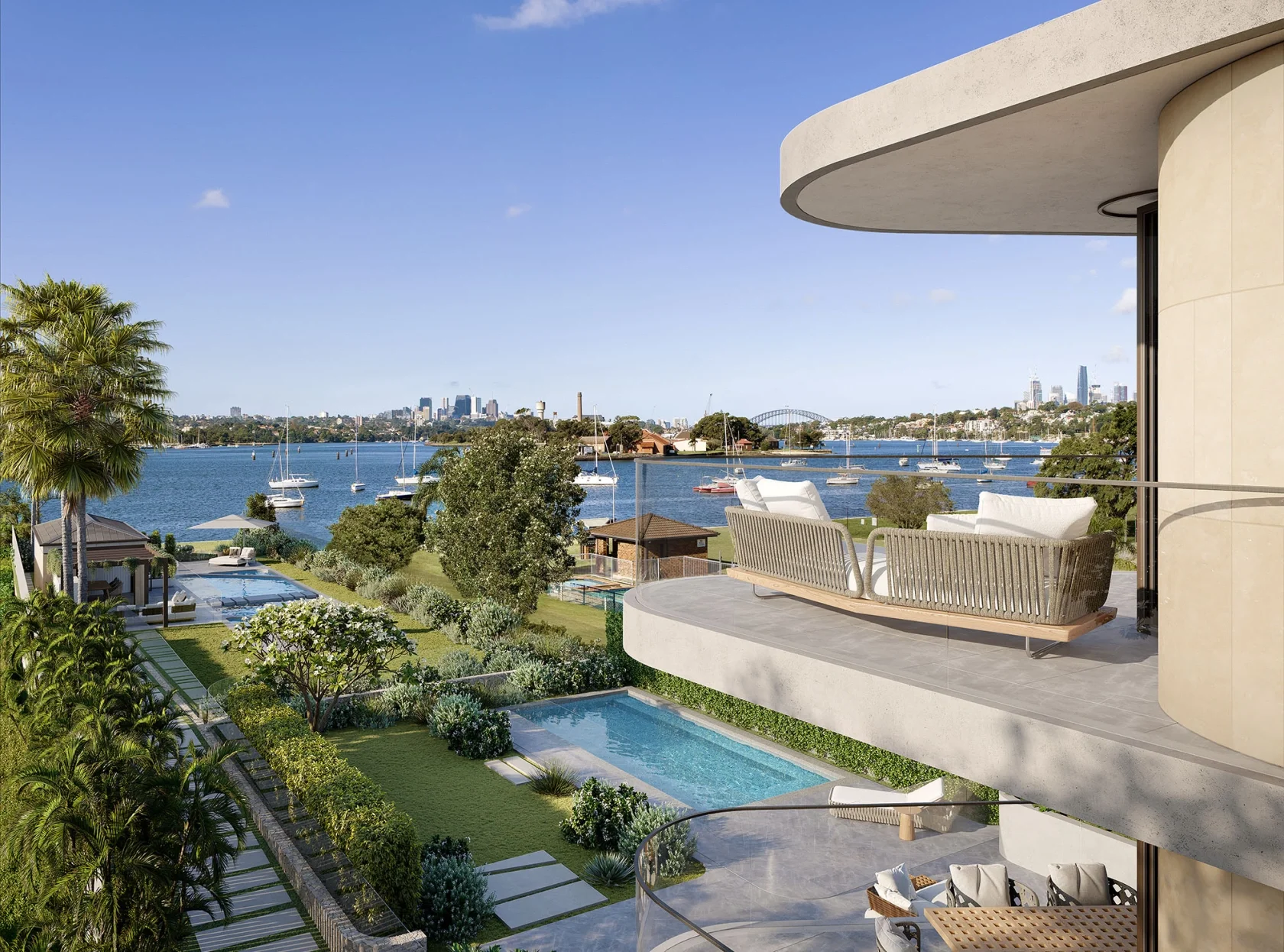 Composed of three whole-floor residences, Lusso is set on the shores of the Parramatta River with panoramic Harbour, Bridge and City skyline vistas.
