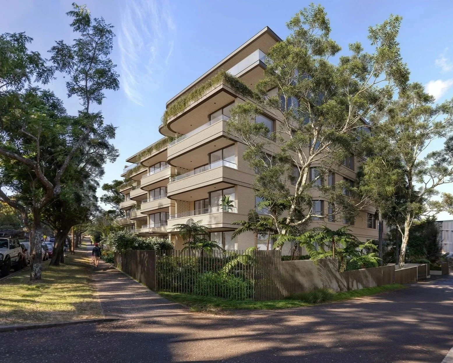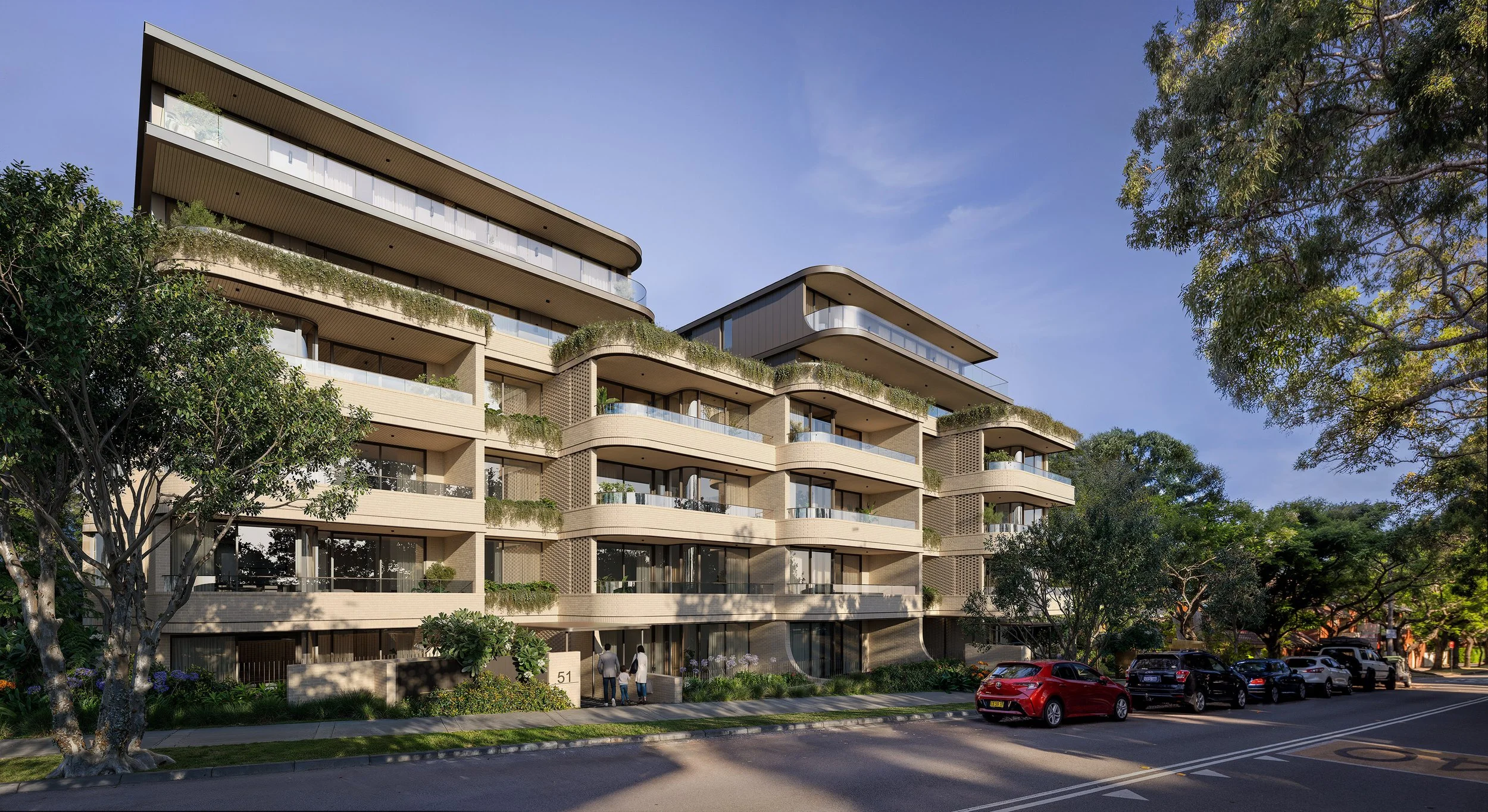Nestled within a boutique block of landscaped gardens, the site sits quietly between Murdoch Street and Education Lane, allowing the building to engage both street and garden with equal sensitivity.