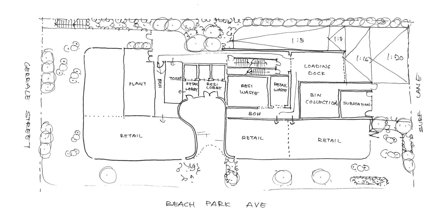 βThe ripples and contours that exist in the local landscape have inspired the layered banding that defines the built form. Intensified layers on the lower levels ground the podium, with a lightened sense of detailing sweeping the upper levels.β